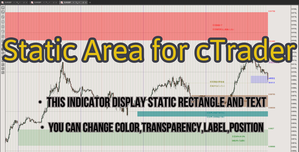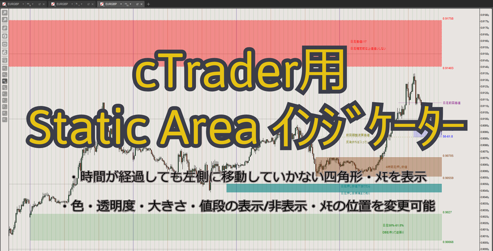 こちらはチャート上に4角形(長方形)と、テキスト(ラベル)を表示させるインジケーターとなります。